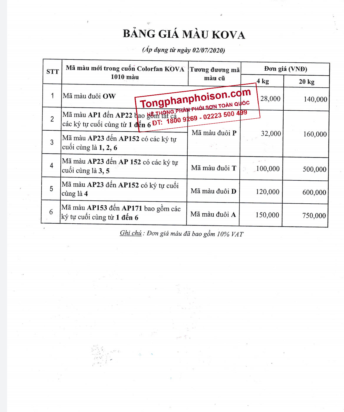 - Quý khách hàng lưu ý bảng báo giá sơn và chương trình chiết khấu % sẽ được áp dụng trên toàn quốc và sẽ được cập nhật khi có bảng báo giá mới từ phía nhà sản xuất.